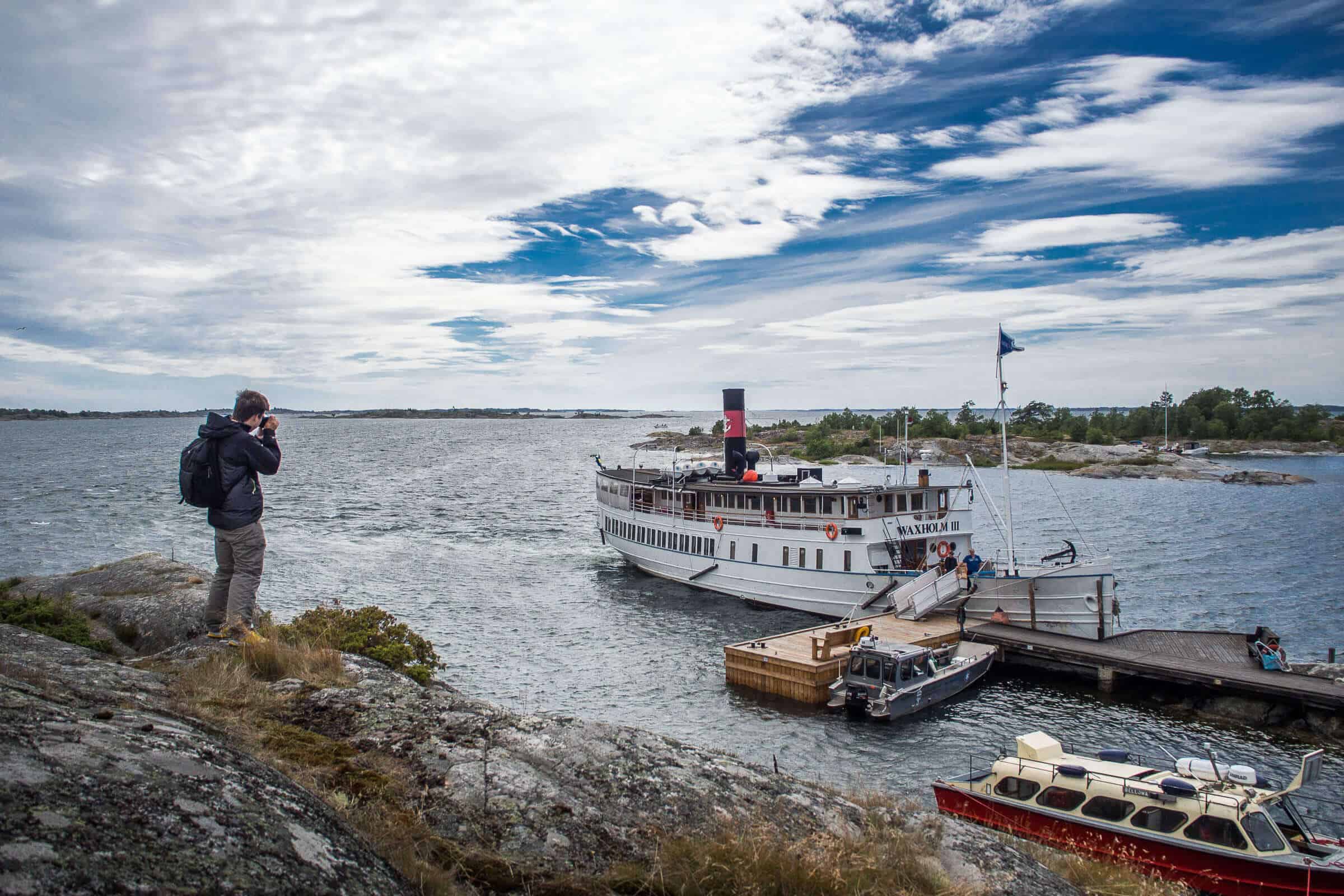 Quoi de mieux pour prendre la mesure de Stockholm et de sa région que de partir explorer en bateau ? Et pas n’importe quel bateau : un héritage de la belle époque, un bateau à vapeur. Un beau, un blanc aux airs de bateau d’explorateurs : un des grands amours de François. Nous ne pouvions passer à côté de cela !