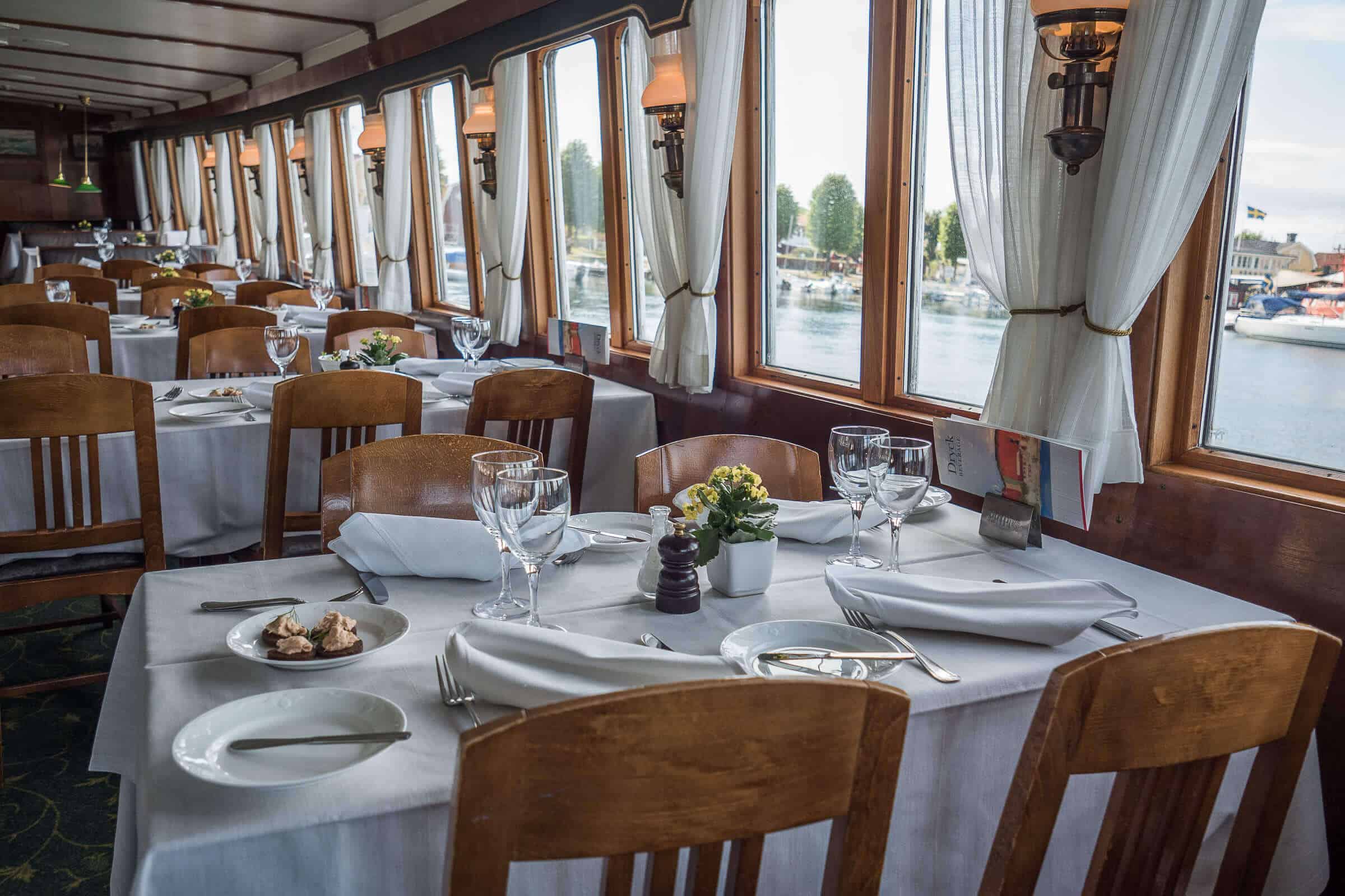 L’activité principale de cette croisière : regarder défiler les paysages. Activité uniquement entrecoupée par les haltes sur les iles et les pauses repas dans le superbe restaurant du bateau. De quoi se croire l’espace d’un instant dans l’équivalent nautique de l’Orient Express.