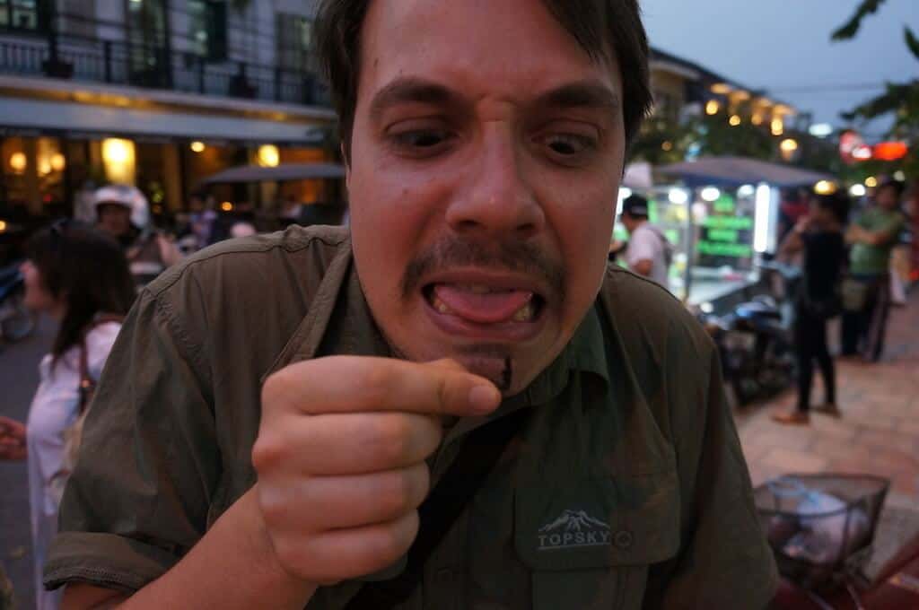 Pour les araignées, les insectes et les serpents, j’en avais goûté à Phnom Penh. Je n’avais pas aimé ! Dire que pour eux, ce sont comme nos cacahuètes et nos chips en apéro !!!