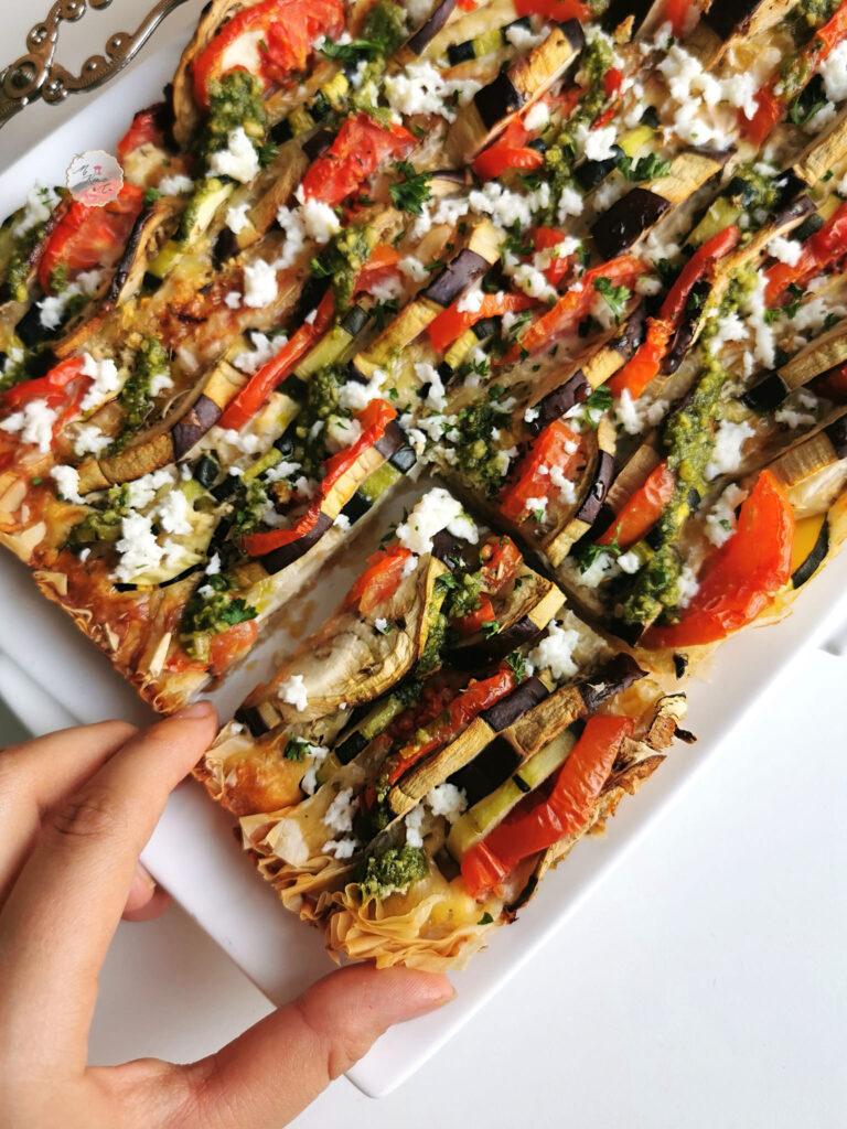 De beaux légumes du soleil, une pâte filo croustillante à l’extérieure avec un intérieur moelleux, quelques touches de bon Pesto et de la mozzarella.. Sacré programme