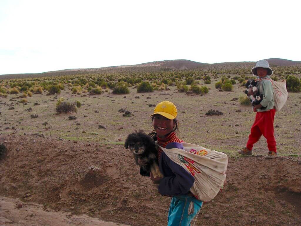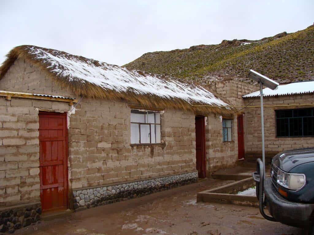 À l’un de nos arrêts près de villages andins du Sud Lipez, nous déjeunons entourés de lamas et avons la chance de voir un bébé qui venait de naître peu avant notre arrivée, le placenta de la maman étant à moins d’un mètre du bébé, qui n’arrivait pas encore à se lever. Pour notre première nuit, notre guide nous dégotte une maison en terre séchée, équipée dernier cri d’un panneau solaire faisant fonctionner l’unique ampoule de la demeure… mais seulement quand le soleil brille !