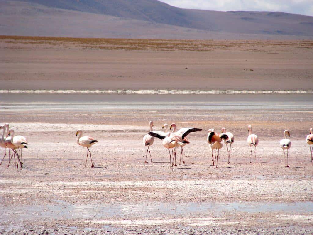Le voyage dans la région du Salar est rythmé par les nombreuses lagunes que nous croisons, toutes différentes. Certaines d’entre elles abritent une faune variée : renard, vigognes, rongeurs en tout genre, canards… Mais celui qui règne en maître de l’élégance est sans conteste le flamand rose.