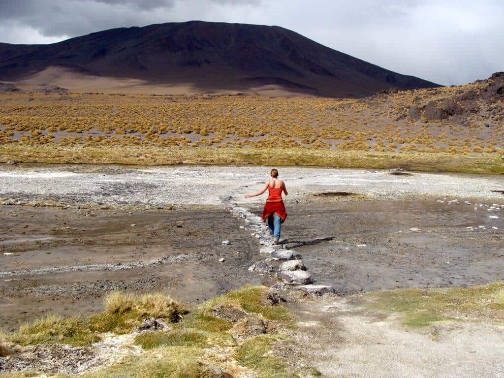 Je me souviens d’une aube aux couleurs orangées transperçant la nuit noire et froide, de tons pastel dansant sur une toile blanche prête à accueillir les fantaisies du jour. Je me souviens d’îlots naufragés au milieu d’un océan blanc, de cactus géants et de chiens errants. Je me souviens de jardins étranges, où même Alice se serait sentie chez elle. Je me souviens d’arbres de pierre, de sources chaudes, de bulles de boue, de lagunes colorées, de lamas de carnaval…