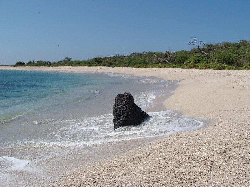Elle se trouve dans la direction opposée à toutes les plages précédentes. Vous devrez longer la piste de l’aéroport. Sur le chemin, vous verrez des iguanes, mais aussi, à marée basse, des coquillages sur pattes (!).