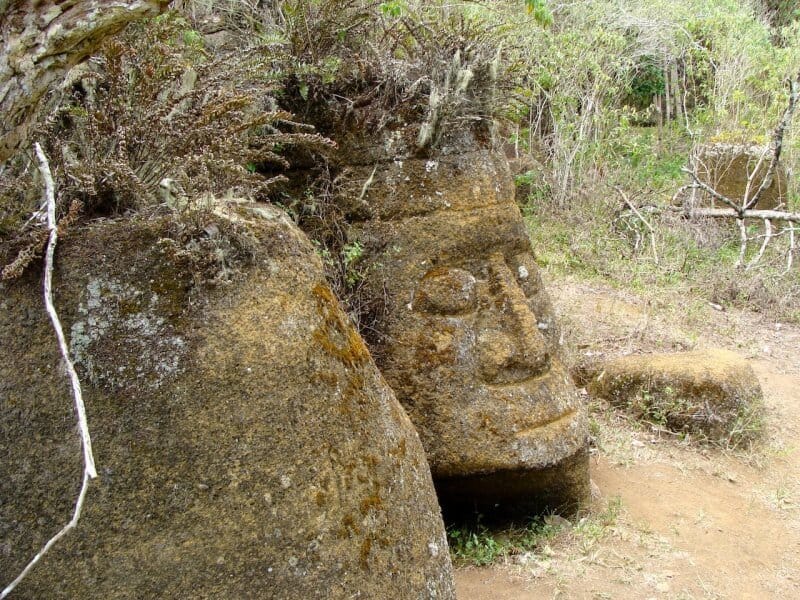Au sommet de l’île de Floreana Murs creusés dans la roche au repère pirates Tête géante au repère de pirates