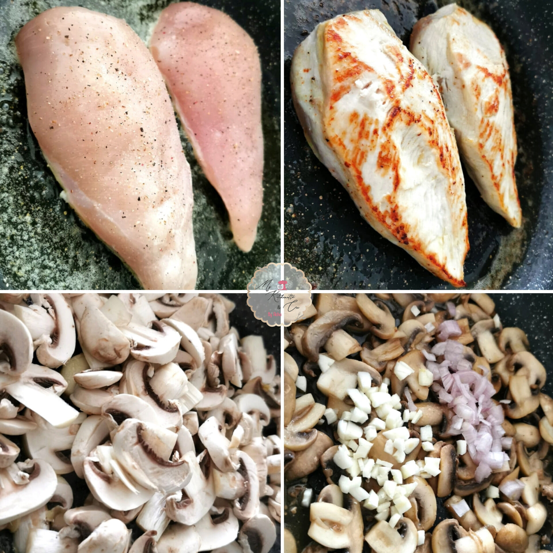 2.Dans une poêle, faites fondre le beurre puis faites dorer les filets de poulet, salez/poivrez. Réservez-les une fois dorés