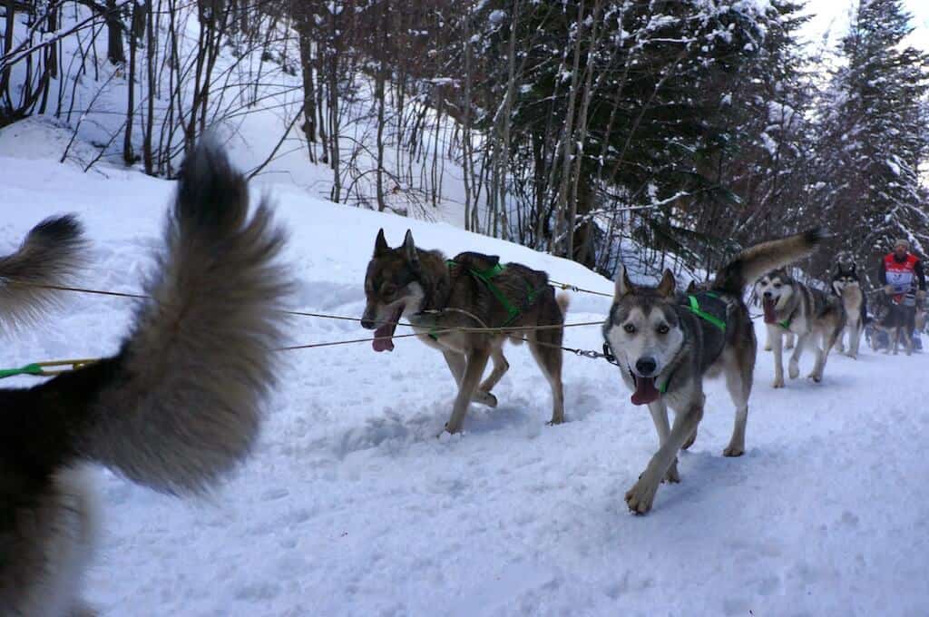 Niveau budget, chaque chien coûte entre 500€ et 2.500€, mais la plupart du temps, le musher constitue sa meute avec des chiens issus de son élevage familial. Le gros poste concerne l’alimentation : comptez environ 6.000€/an. Et, à ce que j’ai pu comprendre des handlers, le budget bottines (chaussettes) a son importance également, vu toutes celles perdues pendant les courses !