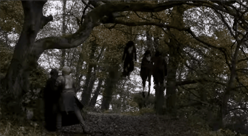 Dans le tas : les 2 tours du pont Frey, le bateau-cercueil Tully, les femmes pendues avec Brienne et Jaime, la promenade en amoureux entre Robb Stark et lady Talisa, l’abbaye où Lady Stark apprend la mort de Ned…