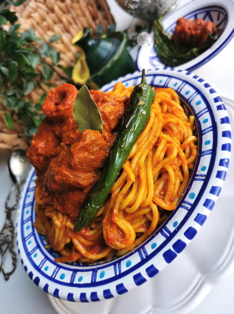 « Makarouna (bel) Salsa/Sansa » une délicieuse recette de pâtes tunisienne à la sauce piquante ! L’une des plus populaires du patrimoine culinaire qui vous promet un voyage riche en saveurs. Plutôt spaghetti ou pâtes « Fell » pour votre makarouna ?