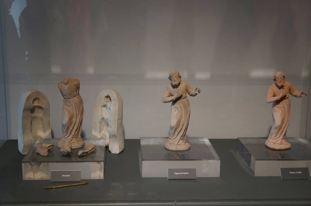 Un petit film (qualité VHS !) m’a permis de découvrir l’envers du décor. La tradition de ces crèches a débuté au début du XIXè siècle et, encore de nos jours, tout est toujours fait à la main: pas de Made in China ni de construction industrielle. Des moules sont créés pour les pièces principales, comme les bustes des personnages et des animaux. Mais à partir de ces pièces, un grand travail est encore nécessaire : les bras, les détails du visage, des tissus et des coiffes des personnages … Pays conservateur, pour ne pas dire macho, les tâches étaient réparties par genre : les hommes travaillant à la construction des figurines et les femmes aux détails des tissus et de la peinture.