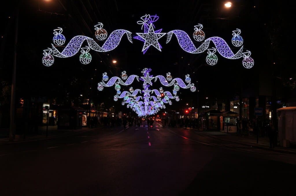 Tant les petites rues du centre ville que les grands boulevards ont revêtus des atours festifs et se sont parés de décorations lumineuses. Même les arbres sont décorés comme des sapins de Noël (vous ne connaissiez pas les orangers et les palmiers de Noël ?). Jeunes et moins jeunes se promènent d’un pas léger, coiffés d’un chapeau de Noël (le tout sans avoir l’air trop ridicule : mais comment font-ils ?), et les serveurs vous apportent les tapas le sourire aux lèvres et des cornes de rennes sur la tête.