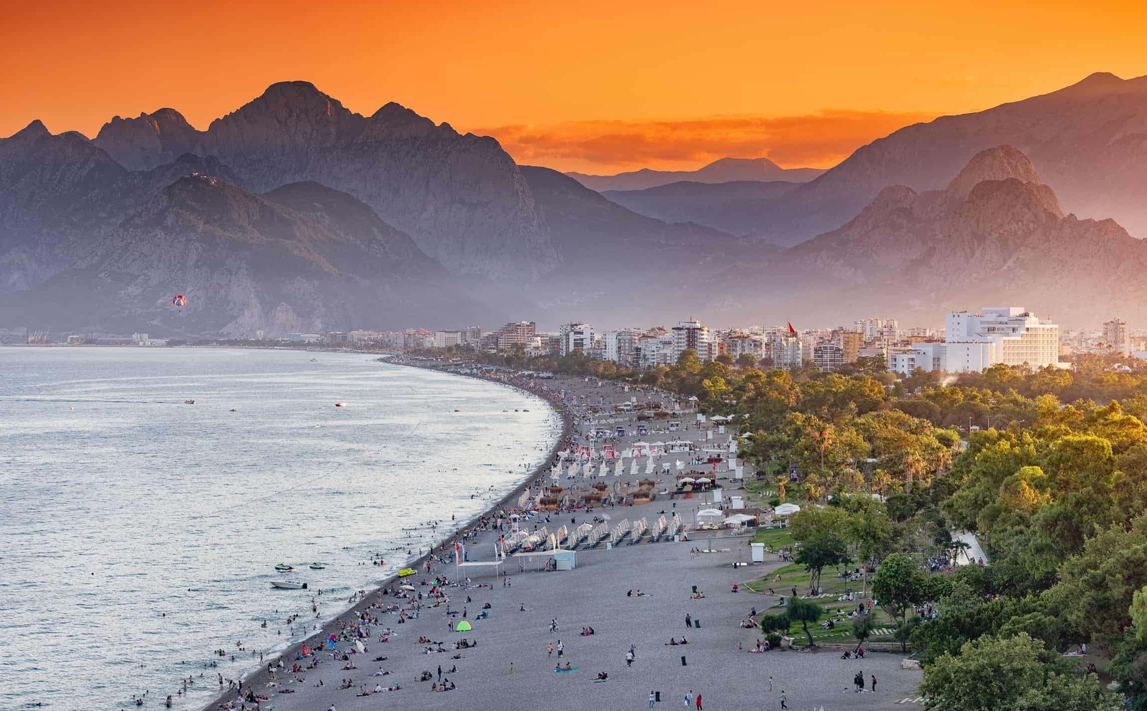 L’une des caractéristiques les plus frappantes d’Antalya est son paysage diversifié, avec des plages de sable doré bordées par les eaux cristallines de la mer Méditerranée et en arrière-plan, les montagnes des monts Taurus. Un patrimoine historique marqué par la vieille ville, appelée Kaleiçi, est un dédale de ruelles pavées, de maisons ottomanes restaurées et de vestiges romains bien préservés, dont le célèbre port Hadrien.