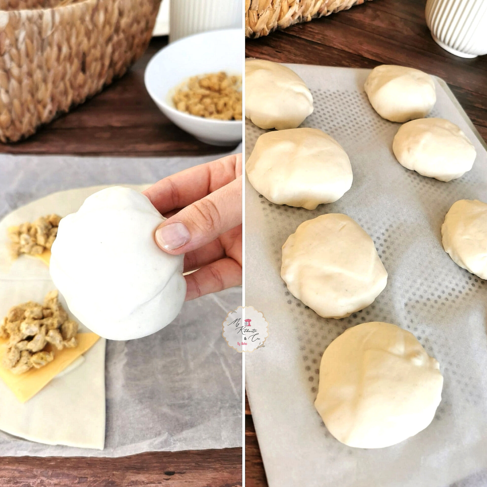 On fourre la p’tite boule de pâte de garniture et de fromage, on la ferme comme un buns et zouuu à griller ! Le résultat est bluffant