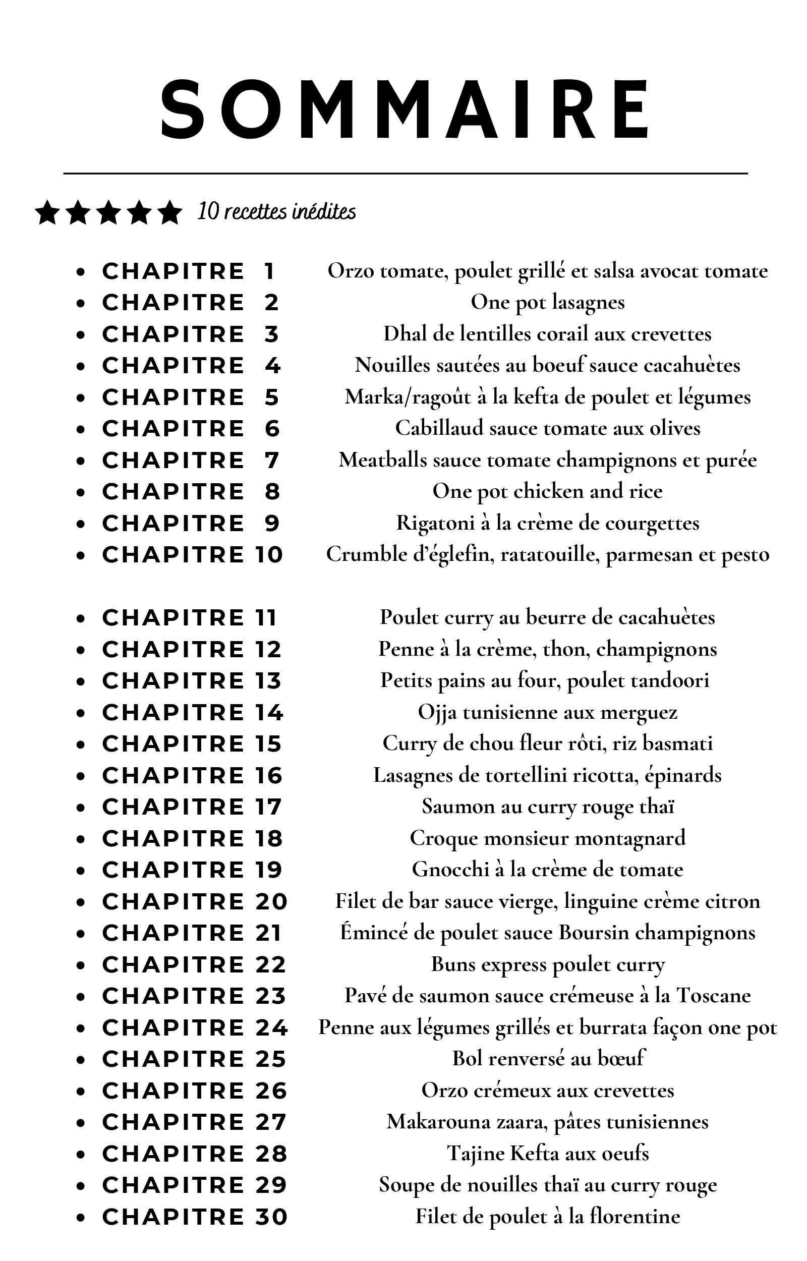 Une collection de 30 recettes savoureuses à réaliser en moins de 60, 45 ou même 30 minutes. Parfait pour des repas rapides, équilibrés et pleins de saveurs, même les soirs les plus chargés. Simplifiez vos dîners sans jamais sacrifier le plaisir de bien manger !