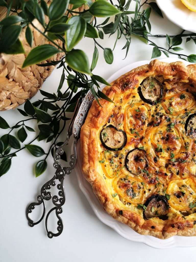 Une pâte feuilletée croustillante, une belle couche de fromage frais ail et fines herbes qui se marie à merveille avec la courgette et l’oignon dorés, le tout recouvert de crème relevée par une pointe de curry sous une pluie de fromage et doré à souhait.. Juste Mmmhhh !