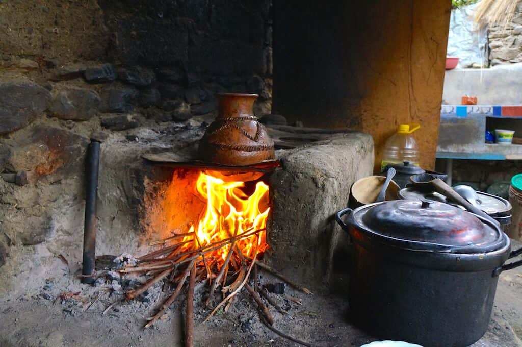 Comme des enfants jouant à construire des édifices en Kapla, nous rassemblons des pierres (blanches, car les bleues exploseraient à la chaleur), et les empilons de façon à former un four circulaire. La tâche n’est pas aisée … surtout arrivé au sommet de l’édifice, pour fermer le tout. Premier éboulement de pierre. Puis un second. L’on rit, surtout la vieille dame venue nous aider.