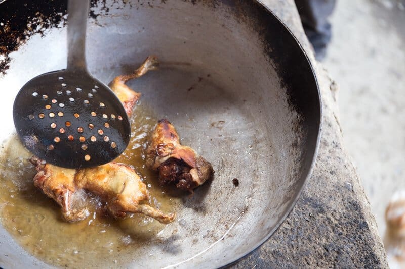 Oui, ce cuy est bien meilleur que celui que nous avons mangé précédemment. Pari tenu ! Sans doute le meilleur que nous ne mangerons jamais …
