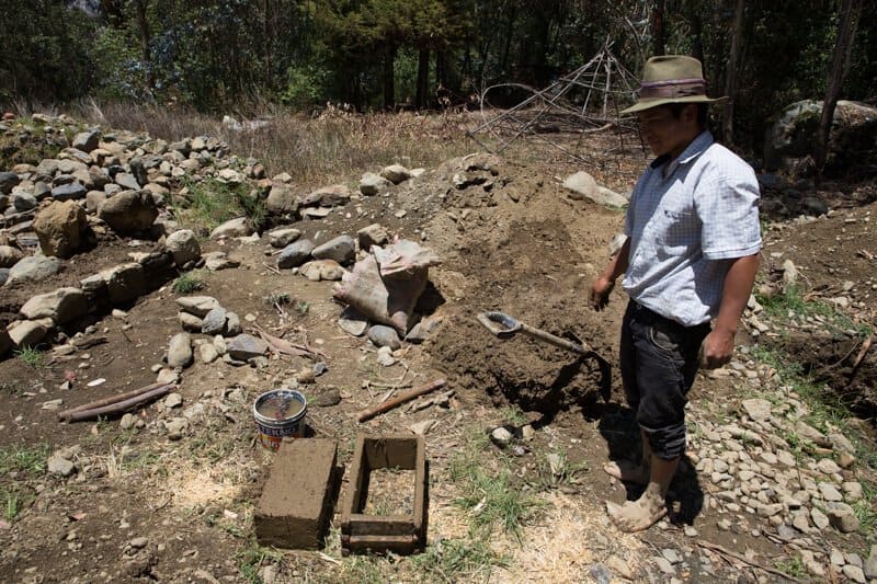Cristian nous a d’abord emmenés à l’arrière de sa maison. Fièrement, il nous présente les bases de futures maisons pour accueillir les touristes. L’une sera circulaire et tout en pierre, nous dit-il, avec un toit de paille. Une autre sera en adobe. Et là-bas, ce sera un endroit pour se détendre à l’ombre des arbres, avec des hamacs.