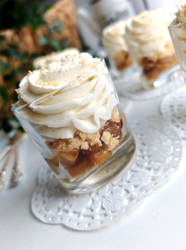 Craquez pour ces verrines tout en fraîcheur et rondeur : une crème chantilly mascarpone aérienne et onctueuse au bon goût de vanille, des pommes fondantes et caramélisées façon tatin et des brisures de biscuits pour le côté « croquant »… Gourmand à souhait