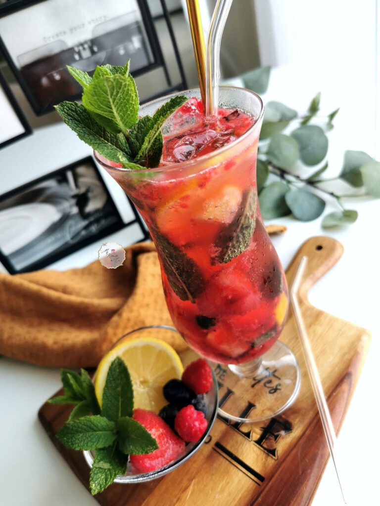 Je vous propose donc de découvrir ma version du Mojito (sans alcool) aux fruits rouges.. à siroter avec plaisir !!