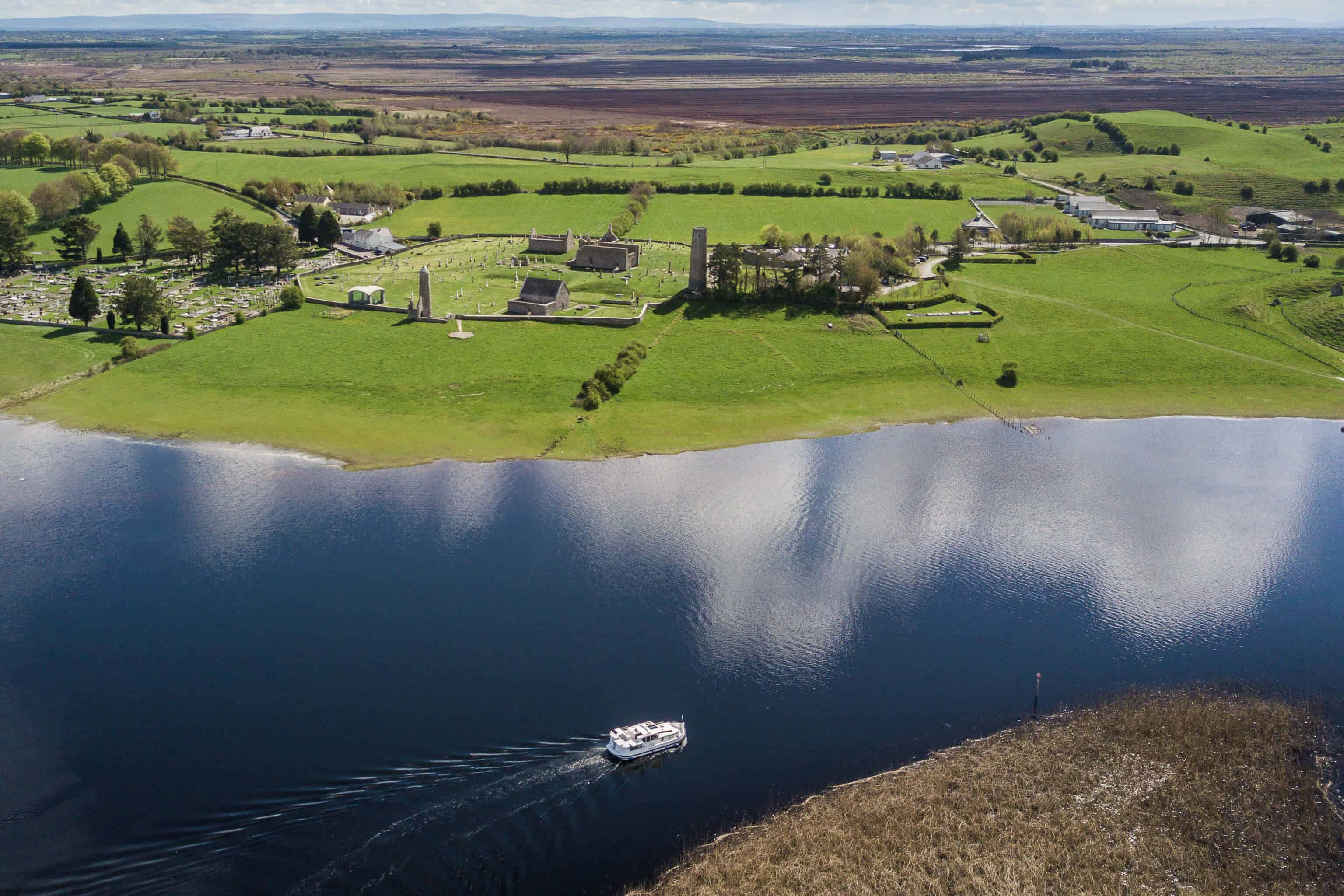 - En bateau, depuis notre base (Quigley’s Marina), traverser le lac Lough Ree jusqu’à la baie de Blackbrink où un étroit canal relie Lecarrow Harbour au lac.