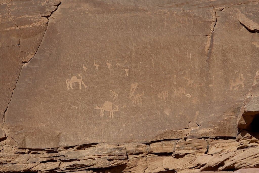 Tout comme à Pétra, ces traces sont le reflet de l’importance du dromadaire pour ces peuples nomades, qui transportaient leurs marchandises à travers le désert.