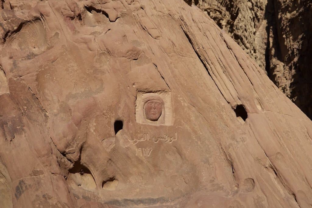 Thomas Edward Lawrence, dit Lawrence d’Arabie a profondément marqué cette région. Un des points touristiques, appelé « la source de Lawrence » est un ancien lieu de campement, caché dans le désert et protégé des regards et du vent par de hautes montagnes. Comme en pèlerinage, le visiteur découvre les traits de Lawrence gravé dans la pierre.