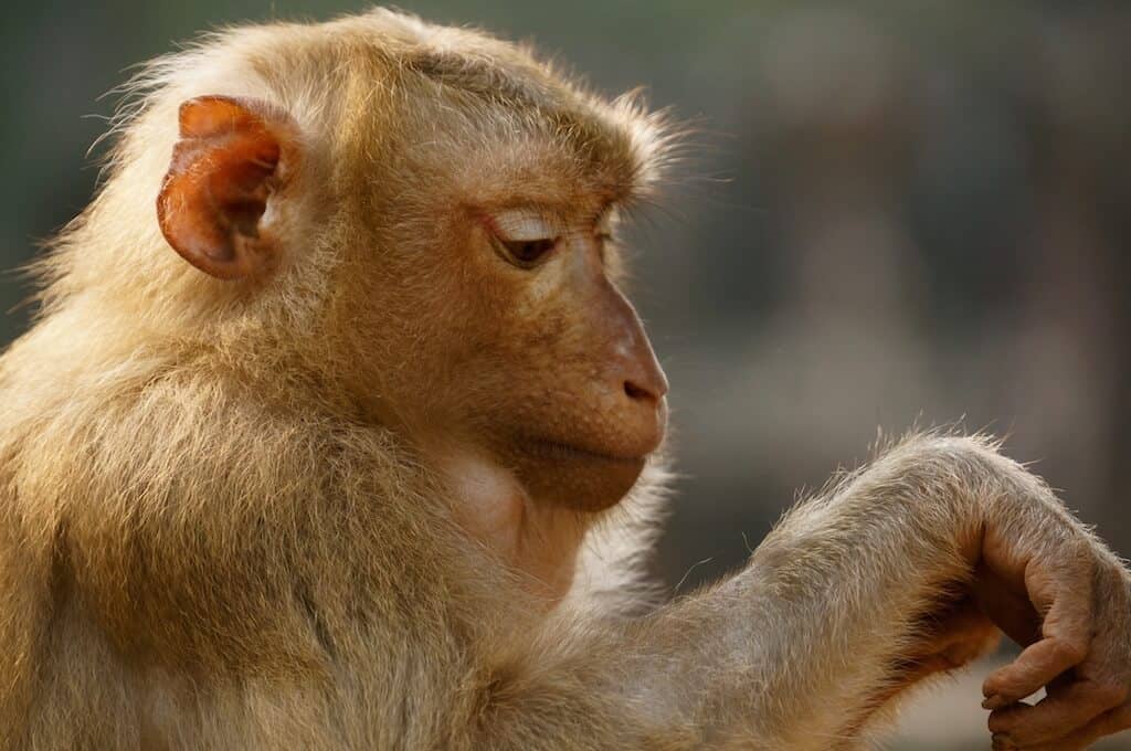 Singe attraction touristique Petit singe captivé par le touriste qui passe Bonjour vous ! -