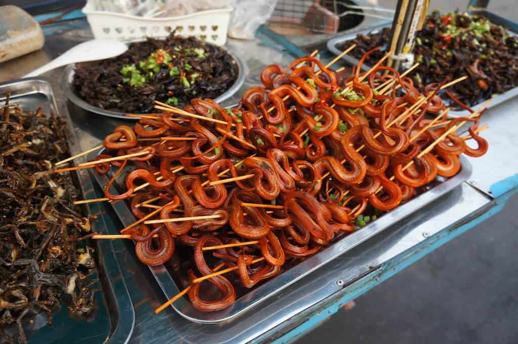 Pour les araignées, les insectes et les serpents, j’en avais goûté à Phnom Penh. Je n’avais pas aimé ! Dire que pour eux, ce sont comme nos cacahuètes et nos chips en apéro !!!