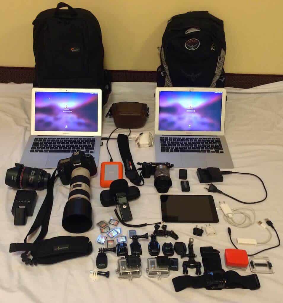 Le disque dur externe est pratique pour stocker de grandes quantités de photo, mais est assez volumineux et lourd, sans compter sa fragilité aux chocs. Nous n’en avons donc pas emporté lors de nos précédents voyages; mais bien lors de notre voyage « Back To America » (voir notre matériel et nos sacs ici).