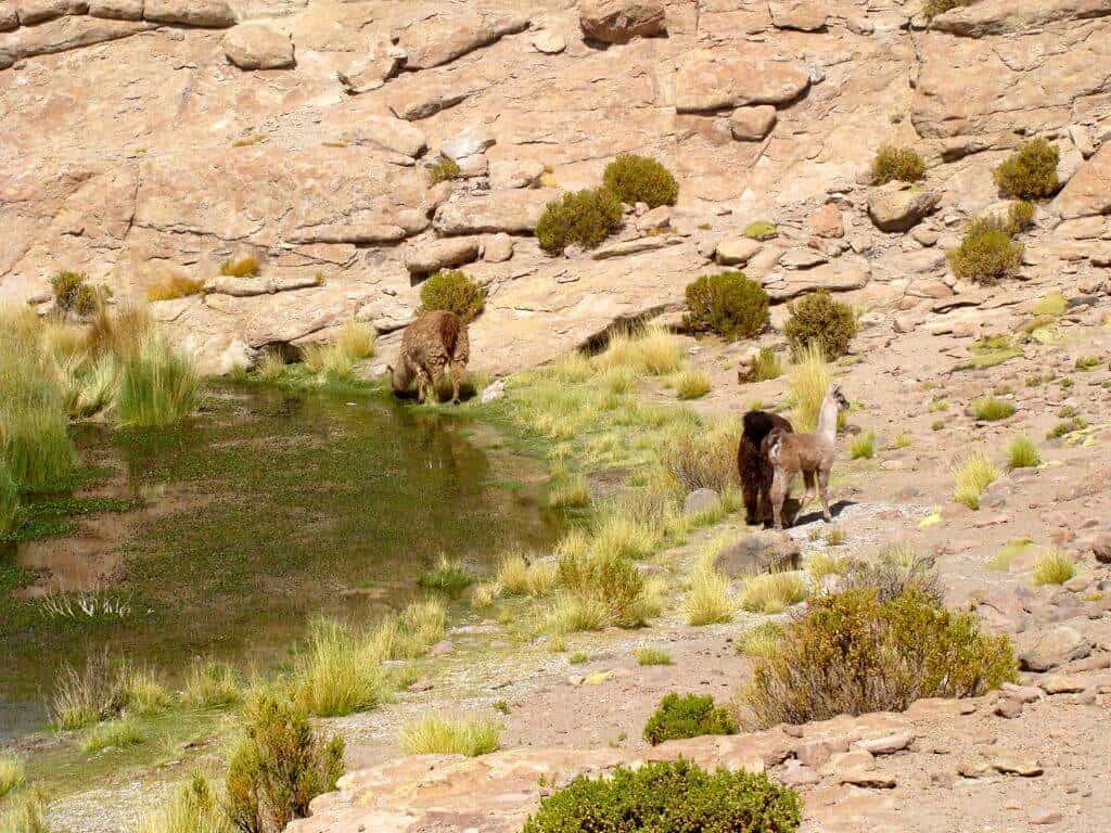 À l’un de nos arrêts près de villages andins du Sud Lipez, nous déjeunons entourés de lamas et avons la chance de voir un bébé qui venait de naître peu avant notre arrivée, le placenta de la maman étant à moins d’un mètre du bébé, qui n’arrivait pas encore à se lever. Pour notre première nuit, notre guide nous dégotte une maison en terre séchée, équipée dernier cri d’un panneau solaire faisant fonctionner l’unique ampoule de la demeure… mais seulement quand le soleil brille !