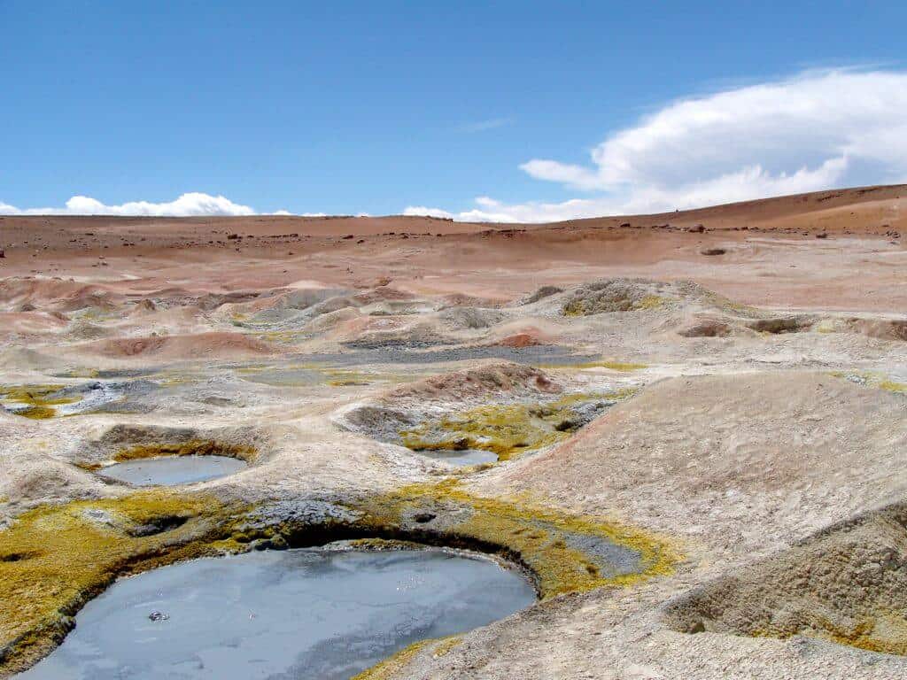 Je me souviens d’une aube aux couleurs orangées transperçant la nuit noire et froide, de tons pastel dansant sur une toile blanche prête à accueillir les fantaisies du jour. Je me souviens d’îlots naufragés au milieu d’un océan blanc, de cactus géants et de chiens errants. Je me souviens de jardins étranges, où même Alice se serait sentie chez elle. Je me souviens d’arbres de pierre, de sources chaudes, de bulles de boue, de lagunes colorées, de lamas de carnaval…