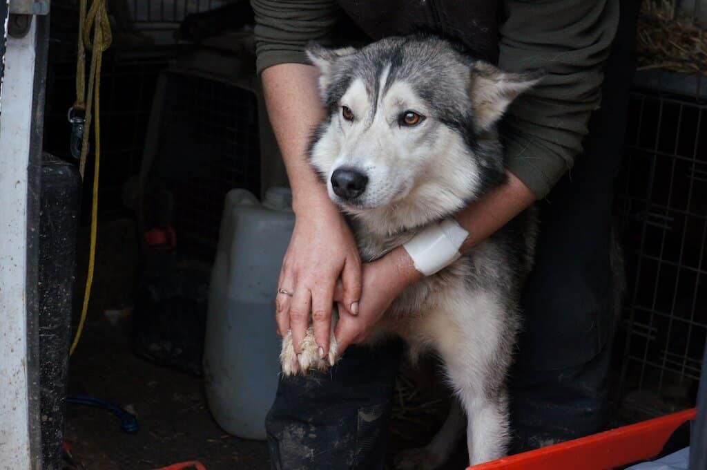 Dans l’idéal, chaque chien est massé et étiré pendant une dizaine de minute, afin de le préparer et d’éviter les contractures. Ses pattes sont également graissées, enduites d’un baume protecteur au niveau des coussinets. Parfois, le chien se voit affublé également de bottines, avec lesquelles il a l’allure d’un enfant essayant de marcher pour la première fois avec de chaussures, gêné et maladroit !