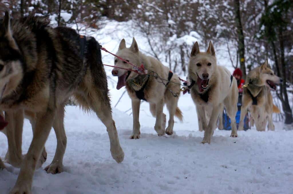 Niveau budget, chaque chien coûte entre 500€ et 2.500€, mais la plupart du temps, le musher constitue sa meute avec des chiens issus de son élevage familial. Le gros poste concerne l’alimentation : comptez environ 6.000€/an. Et, à ce que j’ai pu comprendre des handlers, le budget bottines (chaussettes) a son importance également, vu toutes celles perdues pendant les courses !