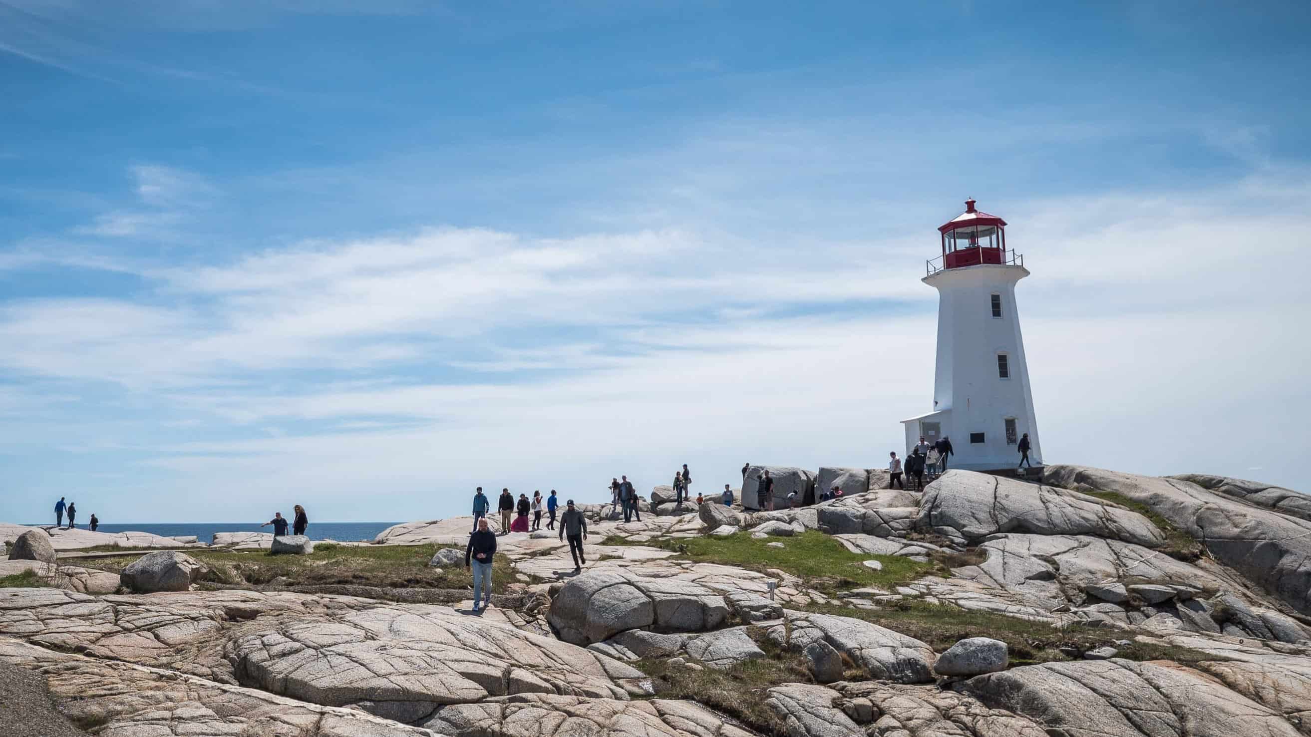 La météo n’est pas très encourageante : un seul jour de soleil prévu dans la prochaine semaine. Nous avons décidé d’en profiter pour aller voir le phare de Peggys Cove, à 1 h de route. Sur une petite route entourée d’eau, d’arbres et de maisons aux façades de bois, nous nous sentons au Canada… ou en Finlande ou en Patagonie chilienne… Bref, nous nous sentons loin, dans un environnement fait de nature et d’espace.