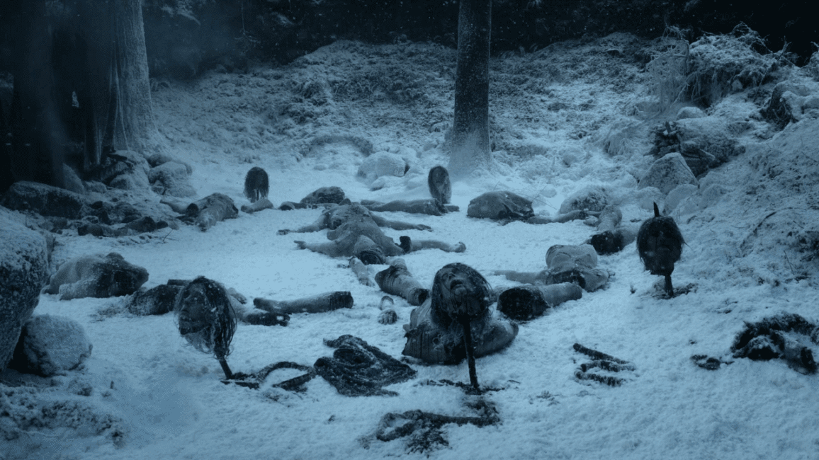 Des patrouilleurs de la Garde de Nuit enquêtent en territoire des sauvageons … et découvrent un village massacré, les victimes découpées en morceau et disposées en cercle.