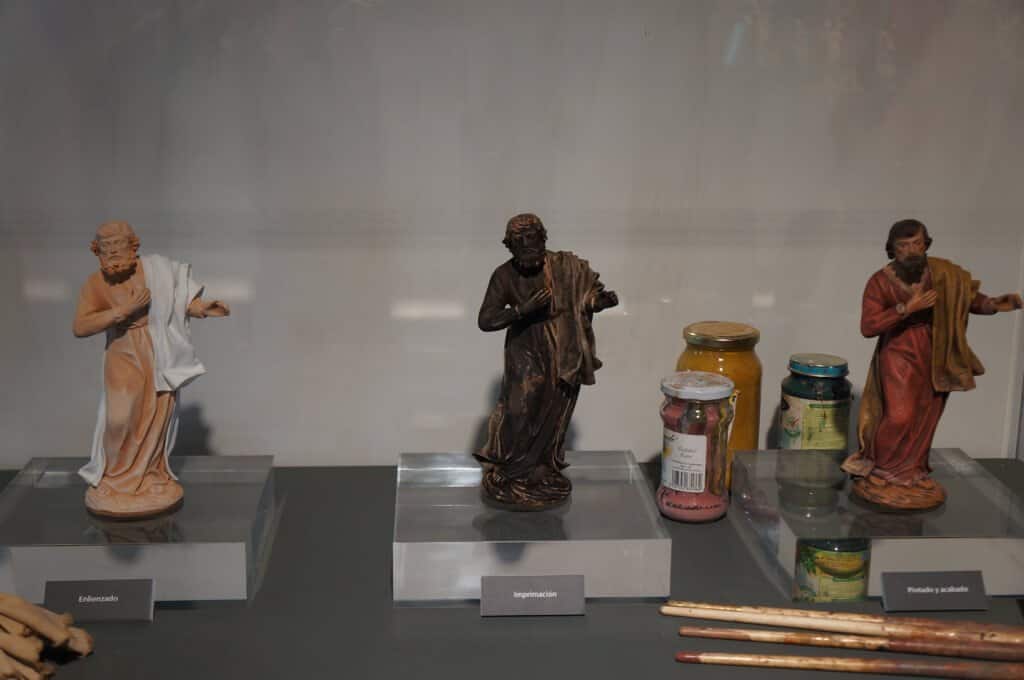Un petit film (qualité VHS !) m’a permis de découvrir l’envers du décor. La tradition de ces crèches a débuté au début du XIXè siècle et, encore de nos jours, tout est toujours fait à la main: pas de Made in China ni de construction industrielle. Des moules sont créés pour les pièces principales, comme les bustes des personnages et des animaux. Mais à partir de ces pièces, un grand travail est encore nécessaire : les bras, les détails du visage, des tissus et des coiffes des personnages … Pays conservateur, pour ne pas dire macho, les tâches étaient réparties par genre : les hommes travaillant à la construction des figurines et les femmes aux détails des tissus et de la peinture.