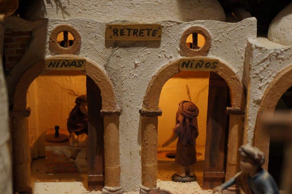 Crèche exposée en plein air, sur la place principale devant l’église du village.Tous les personnages ne sont pas des plus détaillés, mais elle est très belle dans son ensemble, et avec des pièces animées, certaines assez sympa : comme l’enfant accroché aux ailes du moulin à vent, ou le personnage caché à l’intérieur de la cabane des toilettes … - La Casa de los belenes (La Maison des crèches) : Puente Tocinos