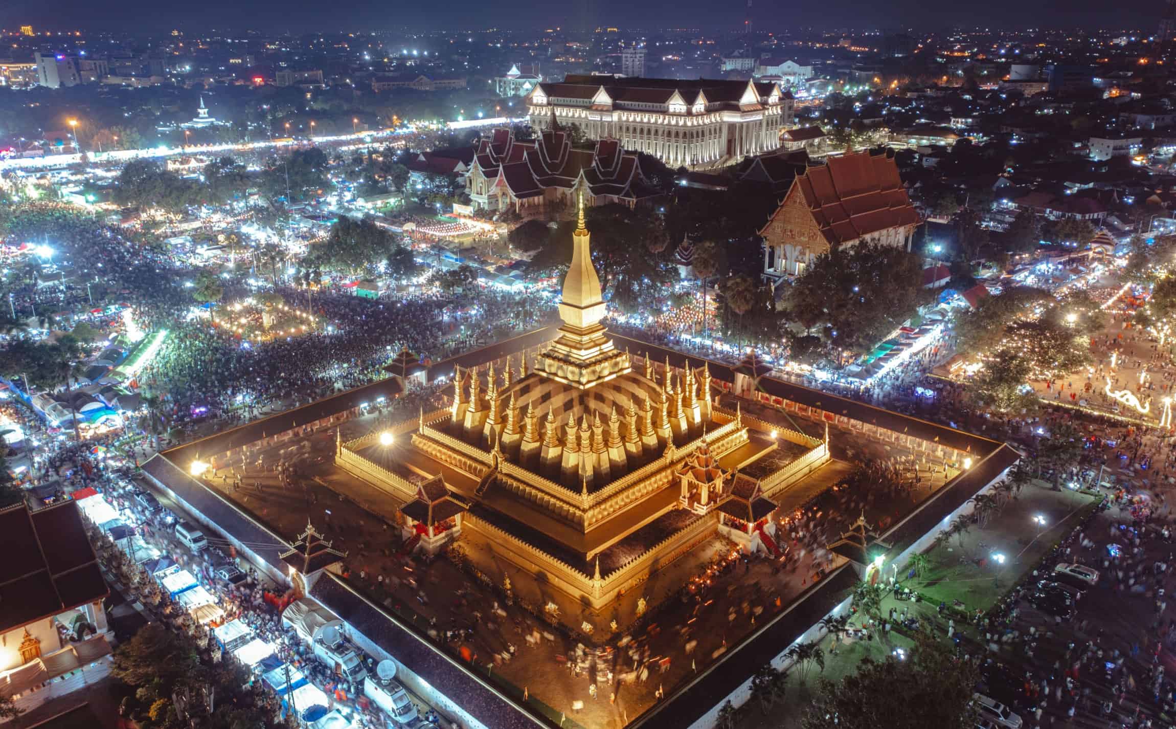 Mais quels sont les lieux d’intérêts de la capitale ? Promenez-vous sur les berges du Mékong pour profiter des couchers de soleil 🌅et, bien entendu, visitez les monuments emblématiques comme le temple Pha That Luang qui est un symbole national ainsi que l’arc de Triomphe Patuxai, construit pour rendre hommage aux personnes ayant combattu contre la France pour l’indépendance du pays. Le marché de nuit de Riverside, la place de la fontaine de Nam Phou sont des endroits incontournables à découvrir si vous voulez profiter de la vie nocturne de la capitale 🌙