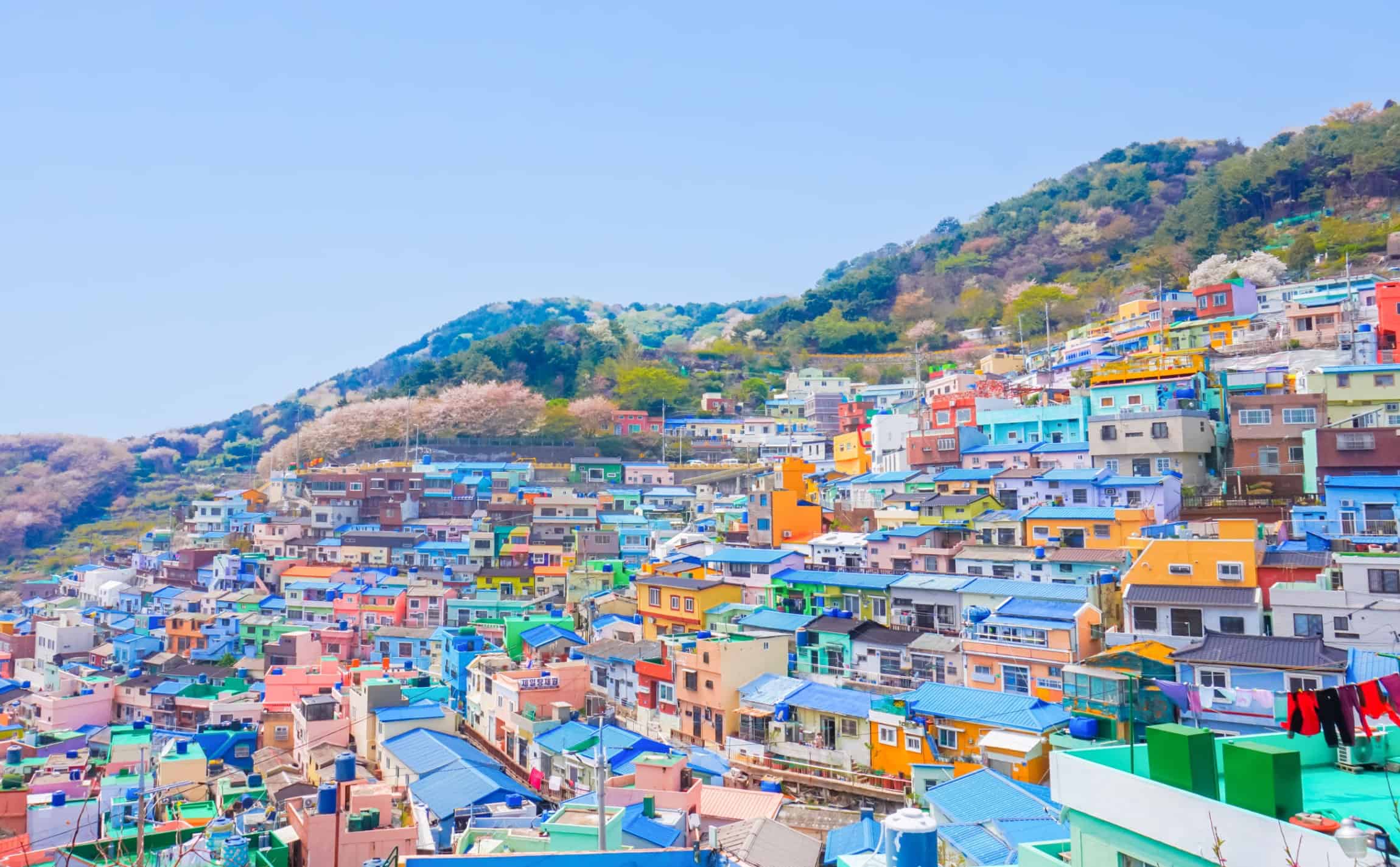 Gamcheon est le village le plus pittoresque de Busan. De nombreux voyageurs le placent d’ailleurs en tête de liste des lieux à visiter dans la ville. Avec sa ribambelle de maisons aux couleurs acidulées installées sur le flanc de la montagne, Gamcheon Culture Village rappelle un peu Cinque Terre, en Italie 🇮🇹