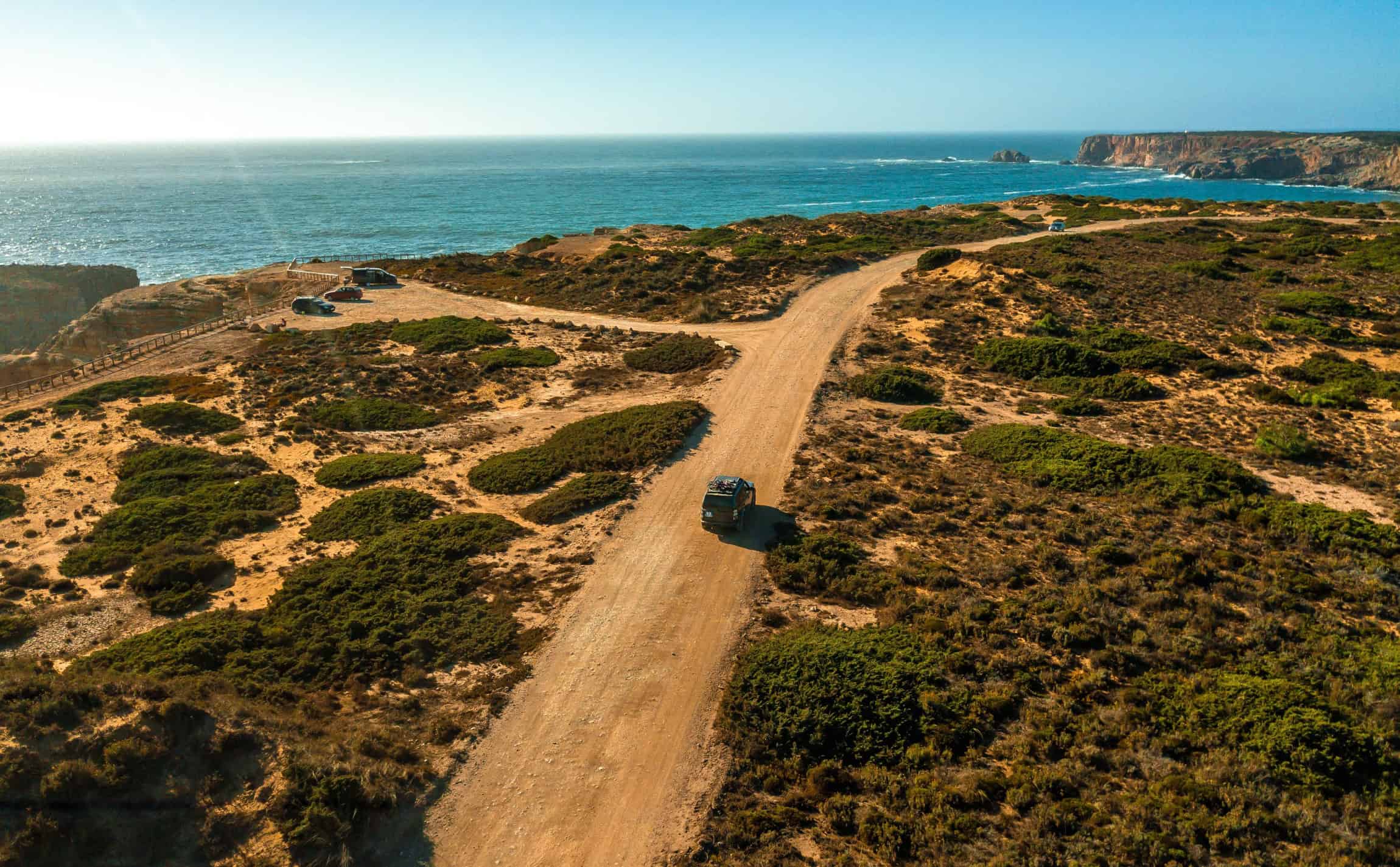 Pour cette dernière journée de votre road trip en Algarve, direction Sagres à un peu plus de 30 minutes de route de Lagos, à la pointe sud-ouest du Portugal 😉 Ce coin de l’Algarve offre des paysages spectaculaires, avec ses immenses falaises plongeant dans la mer et plusieurs forts historiques.