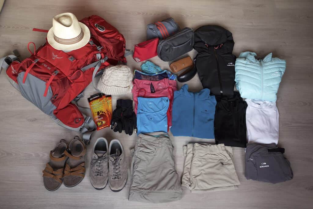 En un an de voyage, les pays traversés seront nombreux et variés, tout comme le style de paysages et de climats : côte, désert, montagne, jungle … Comment prévoir de quoi se vêtir pour des températures pouvant aller de 45 °C à -25 °C (par exemple dans le désert d’Atacama).