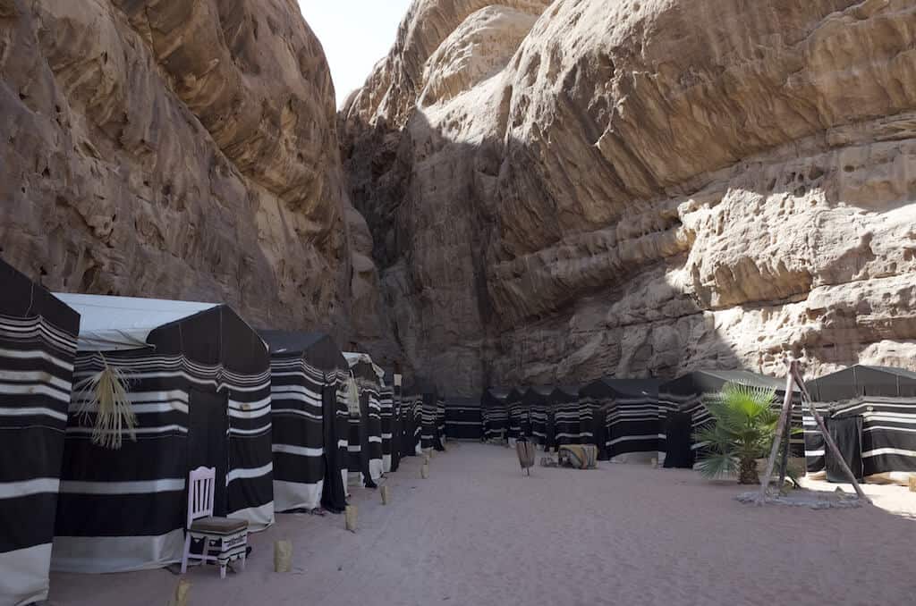 Nous quittons nos dromadaires pour nous installer dans un « camp bédouin ». Loin de l’expérience mystique et intimiste d’un campement nomade, nous découvrons un camping de luxe (certaines tentes ayant même des portes classiques, avec toilette et salle de bain privée). Une expérience « intermédiaire » entre l’hôtel de luxe et la nuit à la belle étoile…